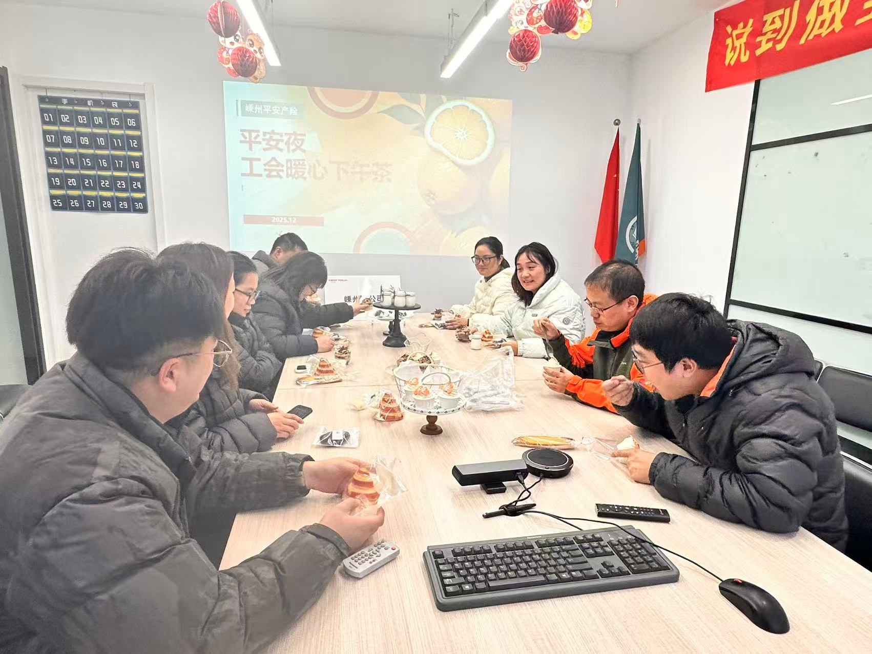 岁末将至,暖意融融。为感谢全体员工一年的辛勤付出,进一步提升团队凝聚力,营造温馨和谐的“家”文化氛围,12月24日下午,嵊州平安产险工会精心组织了一场以“暖心茶叙话平安,凝心聚力启新程”为主题的工会活动。